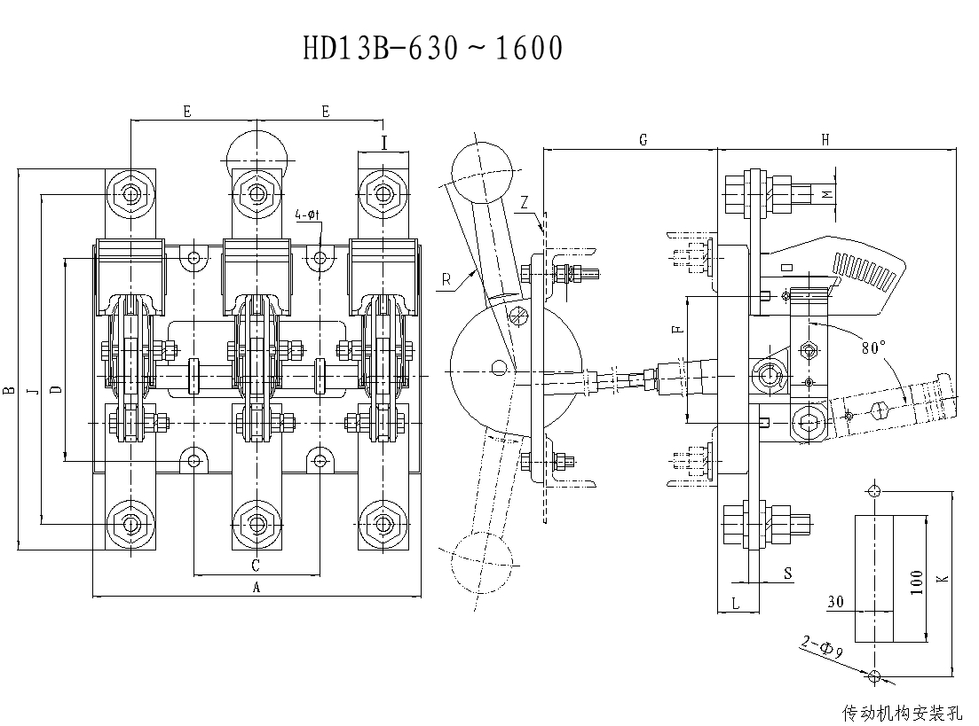 HD13B(BX)系列刀形隔離器適用于額定工作電壓為交流380V,額定頻率50Hz,額定工作電流至1600A。主要用于工業(yè)企業(yè)的配電設(shè)備中,用于接通或分?jǐn)嗑€路或者作為隔離開關(guān)之用。